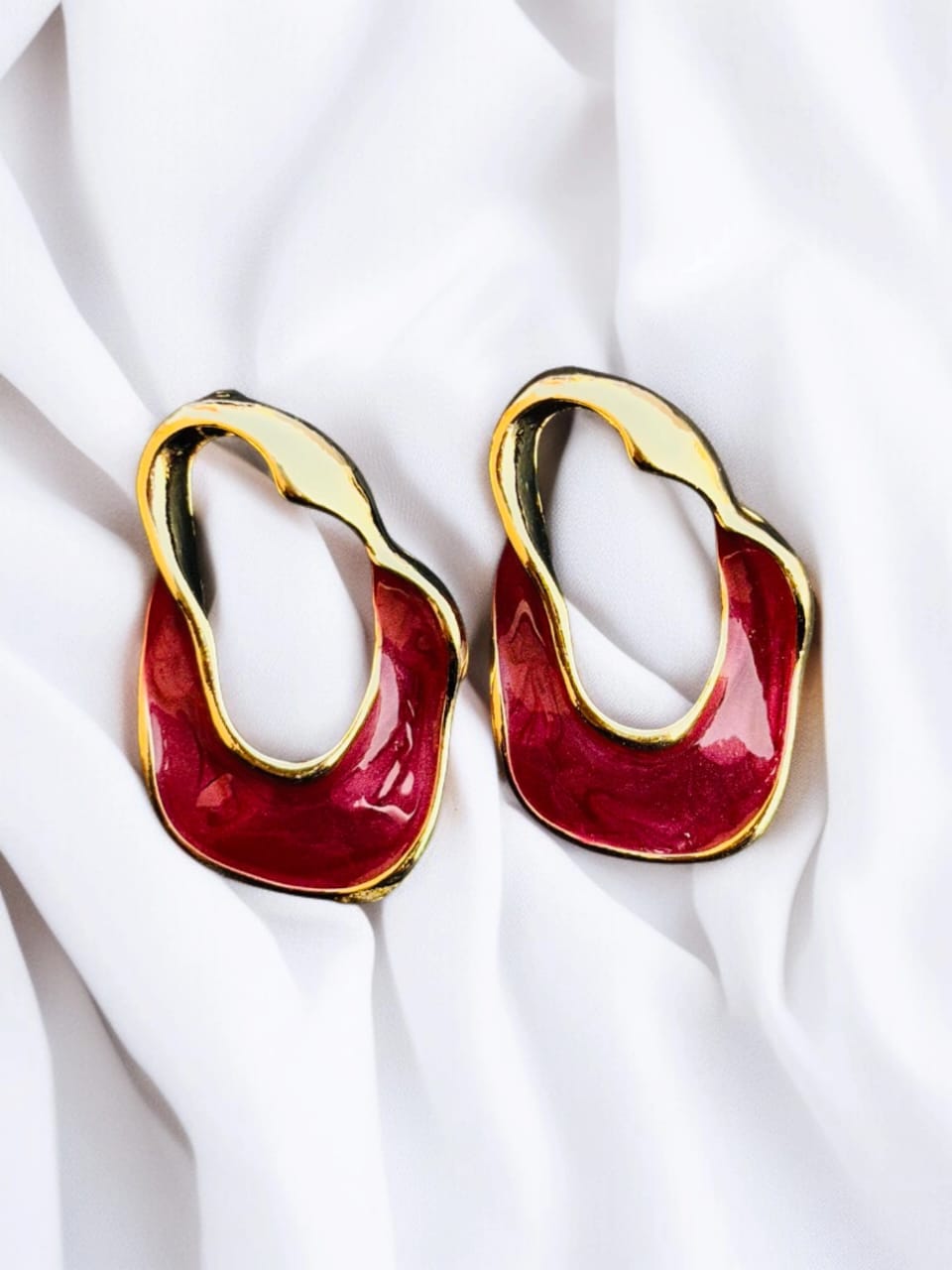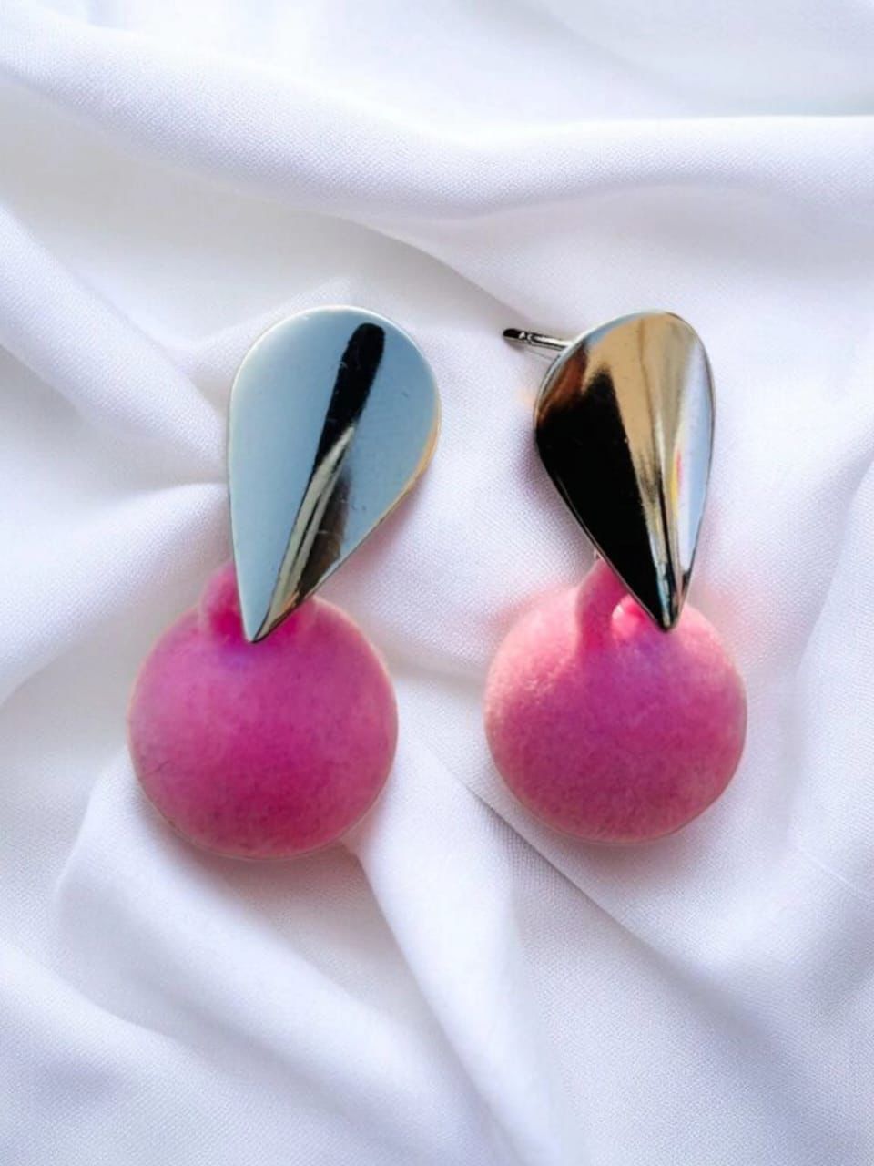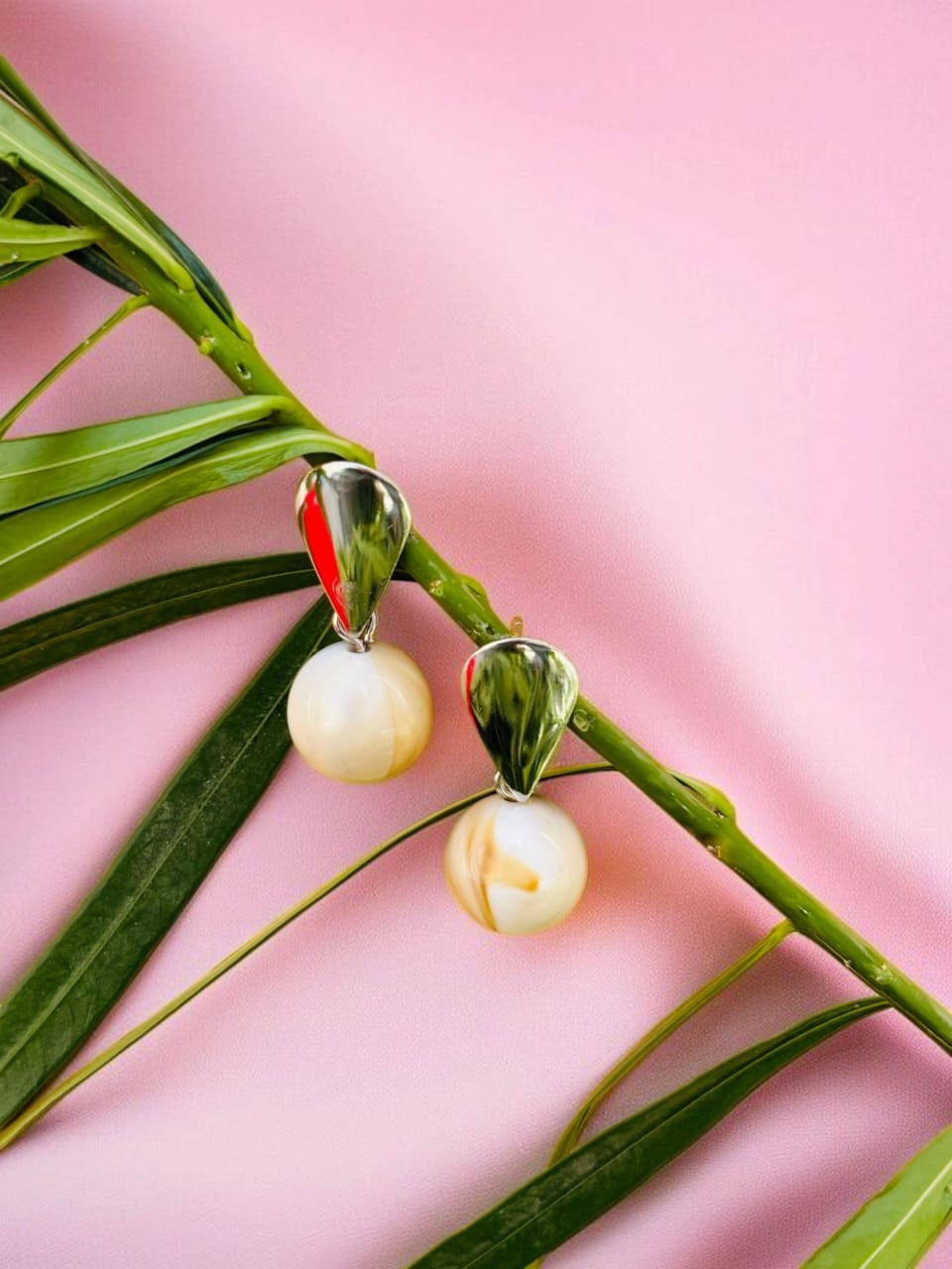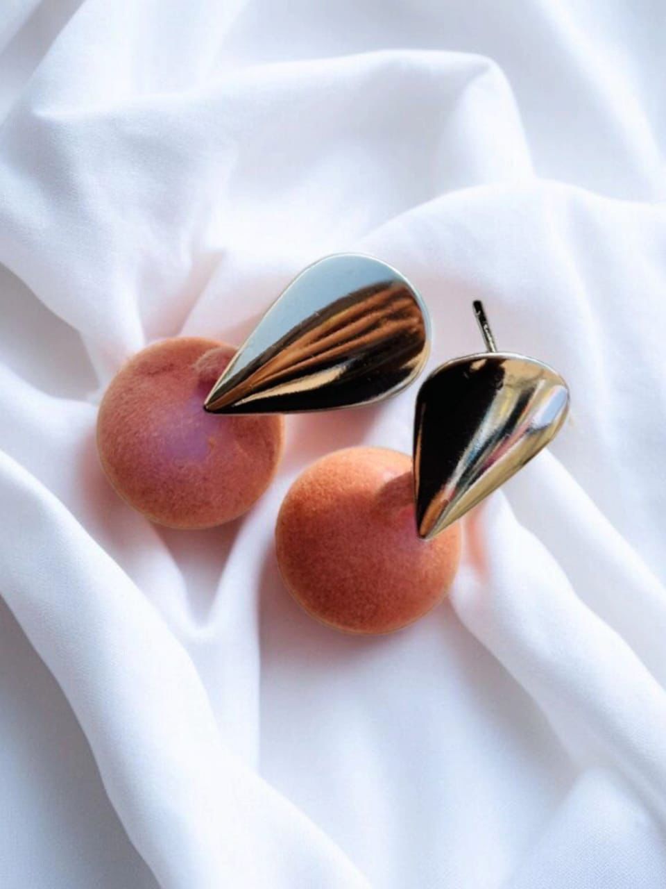 Bold Orange & Pearl Dual-Tone Stud Earrings