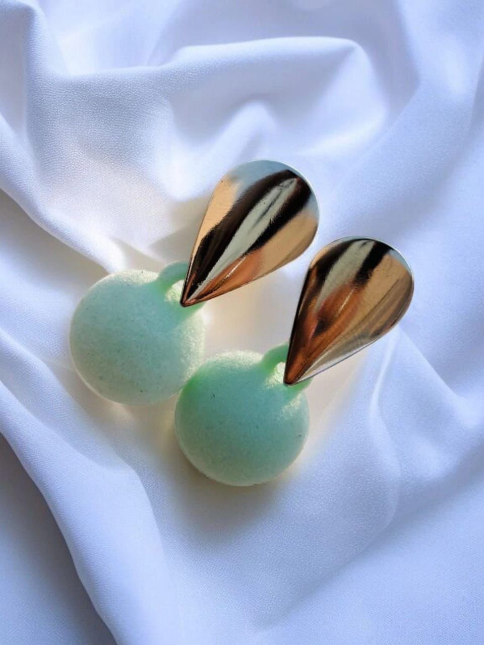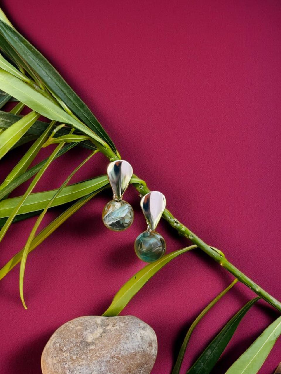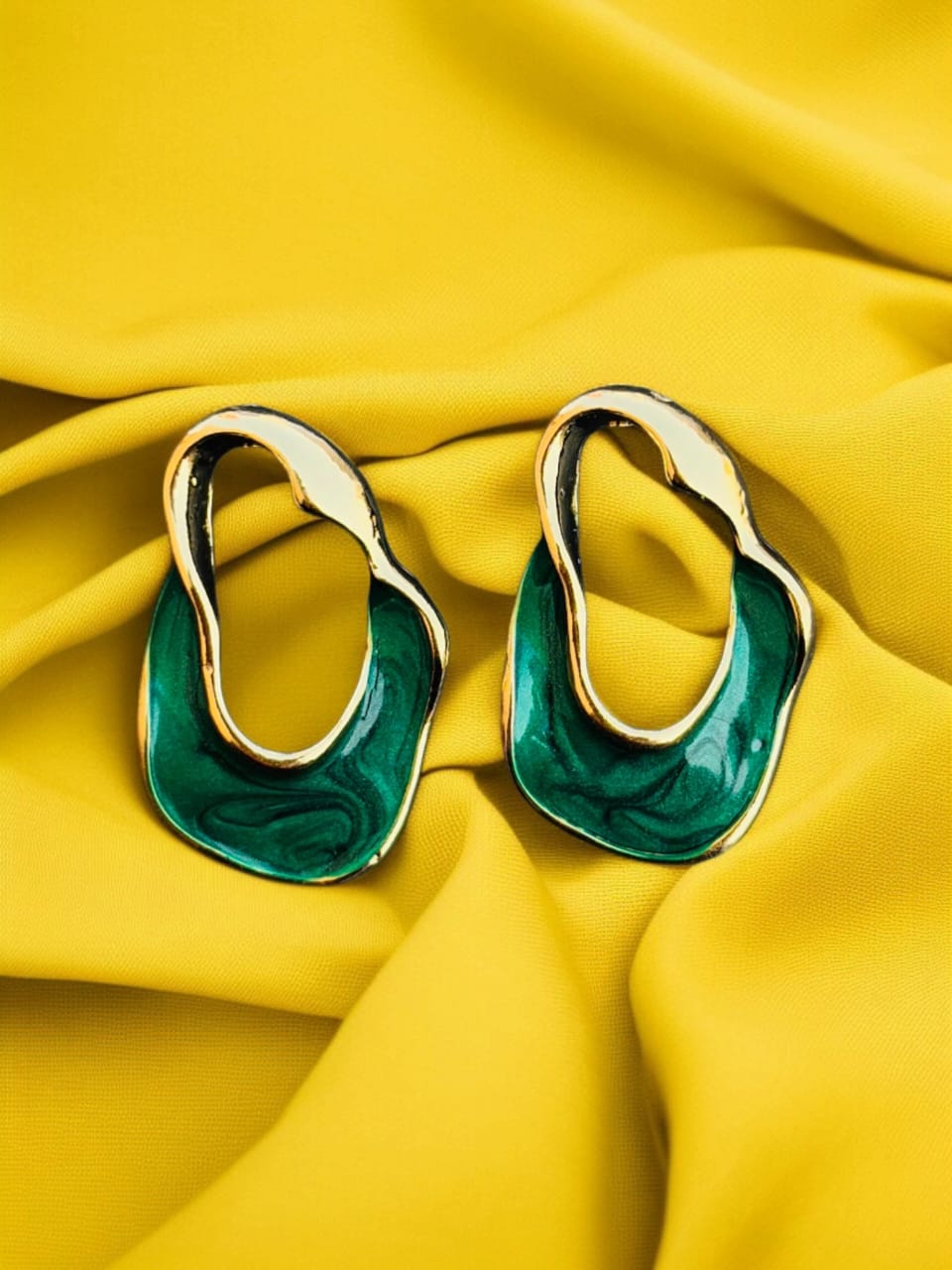 Bold Green & Pearl Dual-Tone Stud Earrings