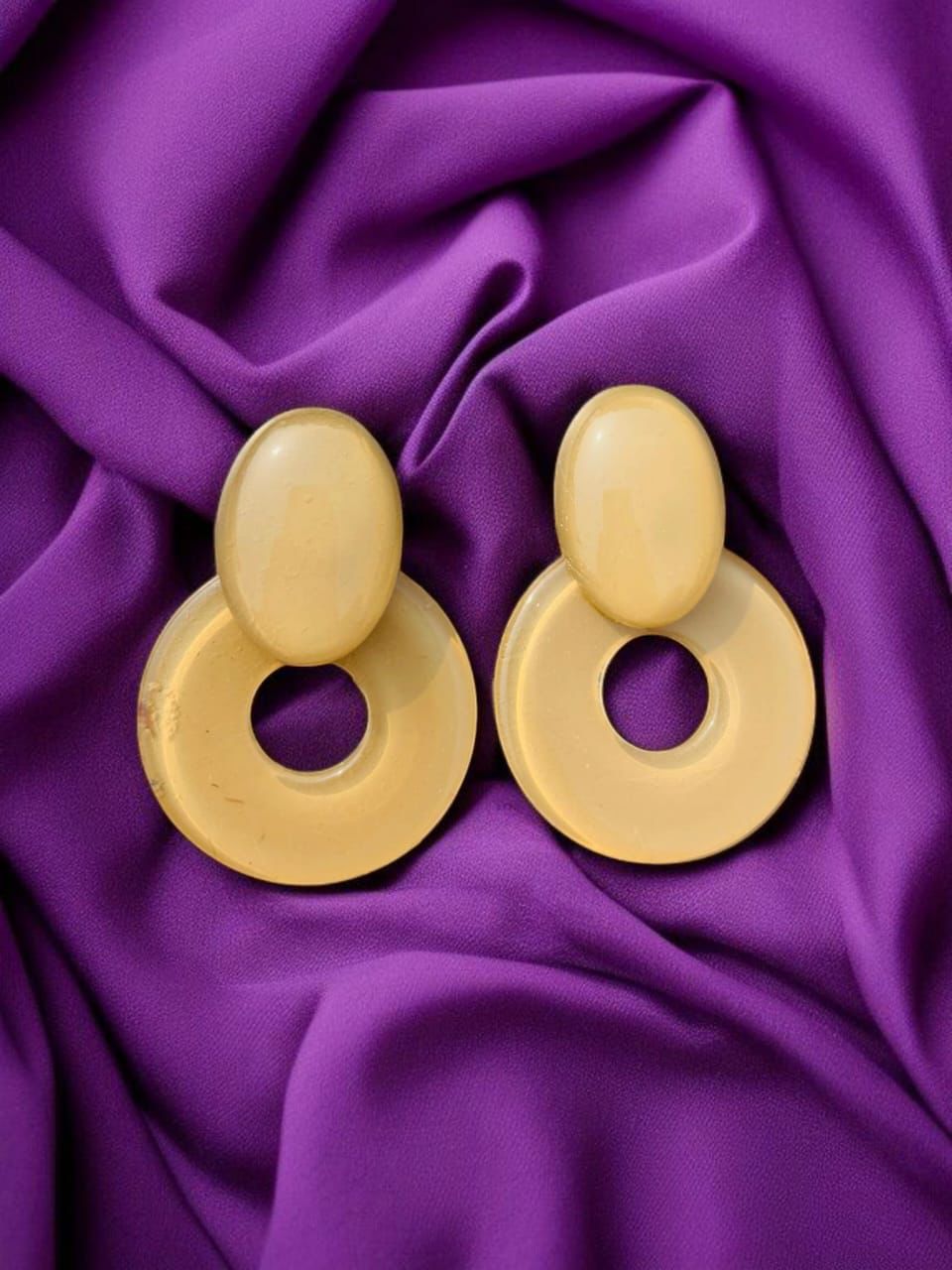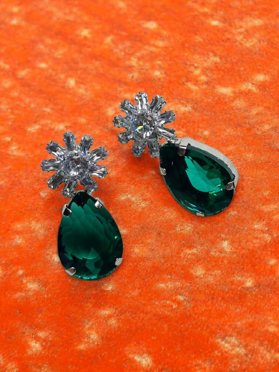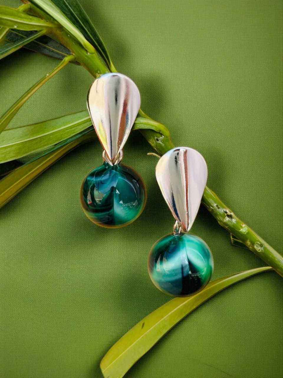 Bold Green & Pearl Dual-Tone Stud Earrings