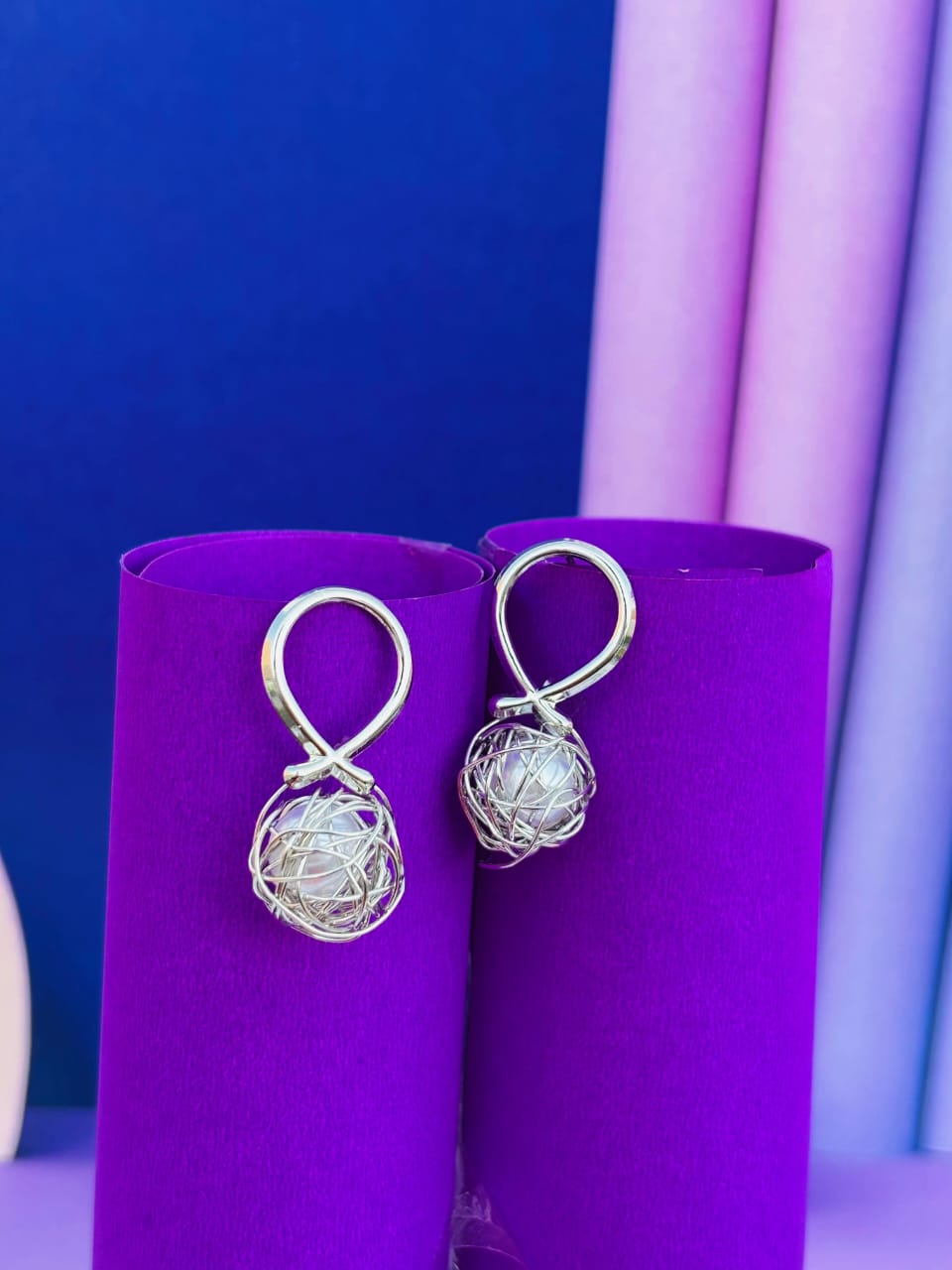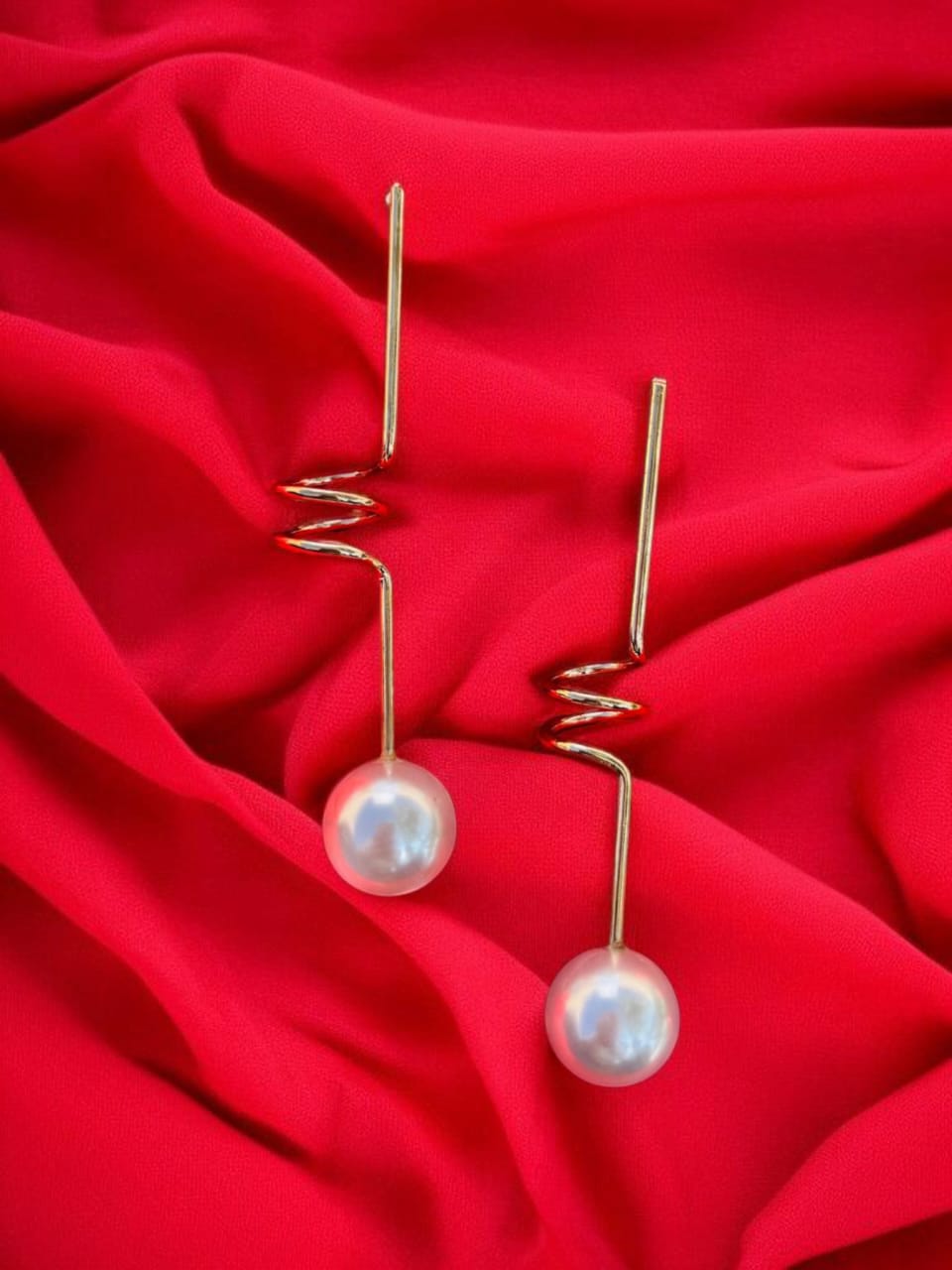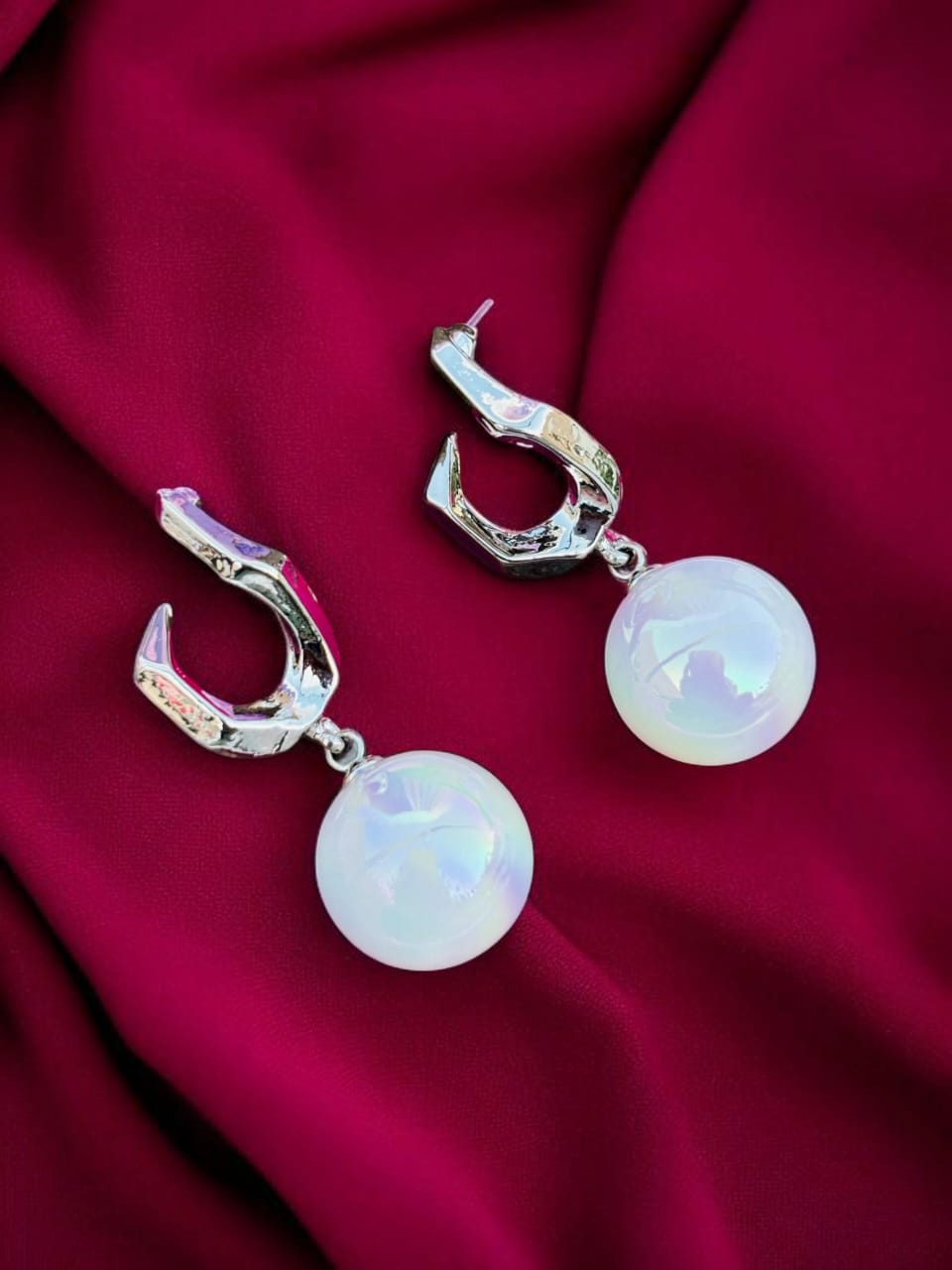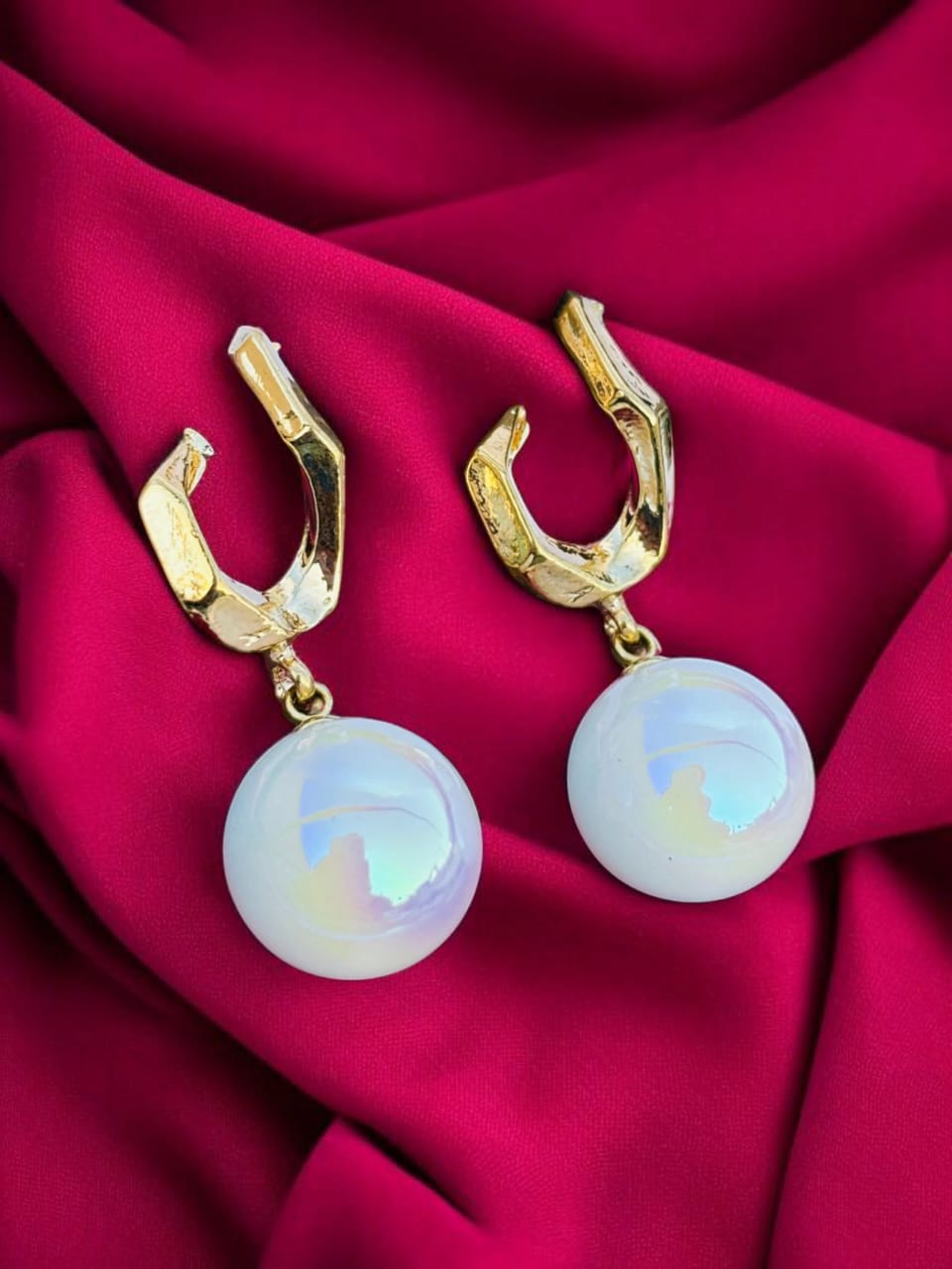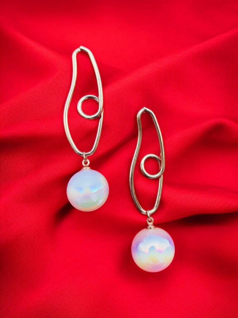 Iridescent Pearl Drop Earrings with Abstract Gold Frame