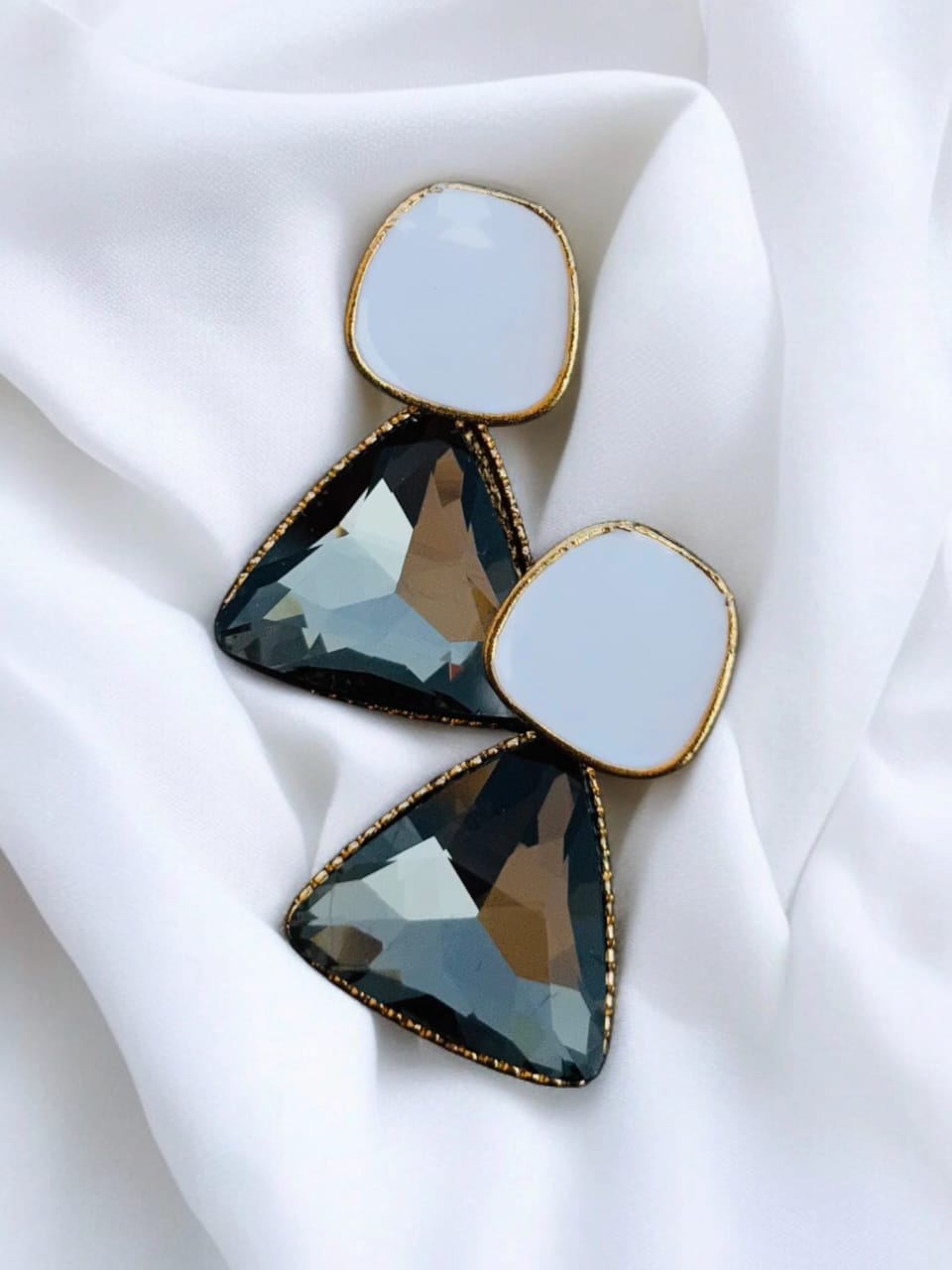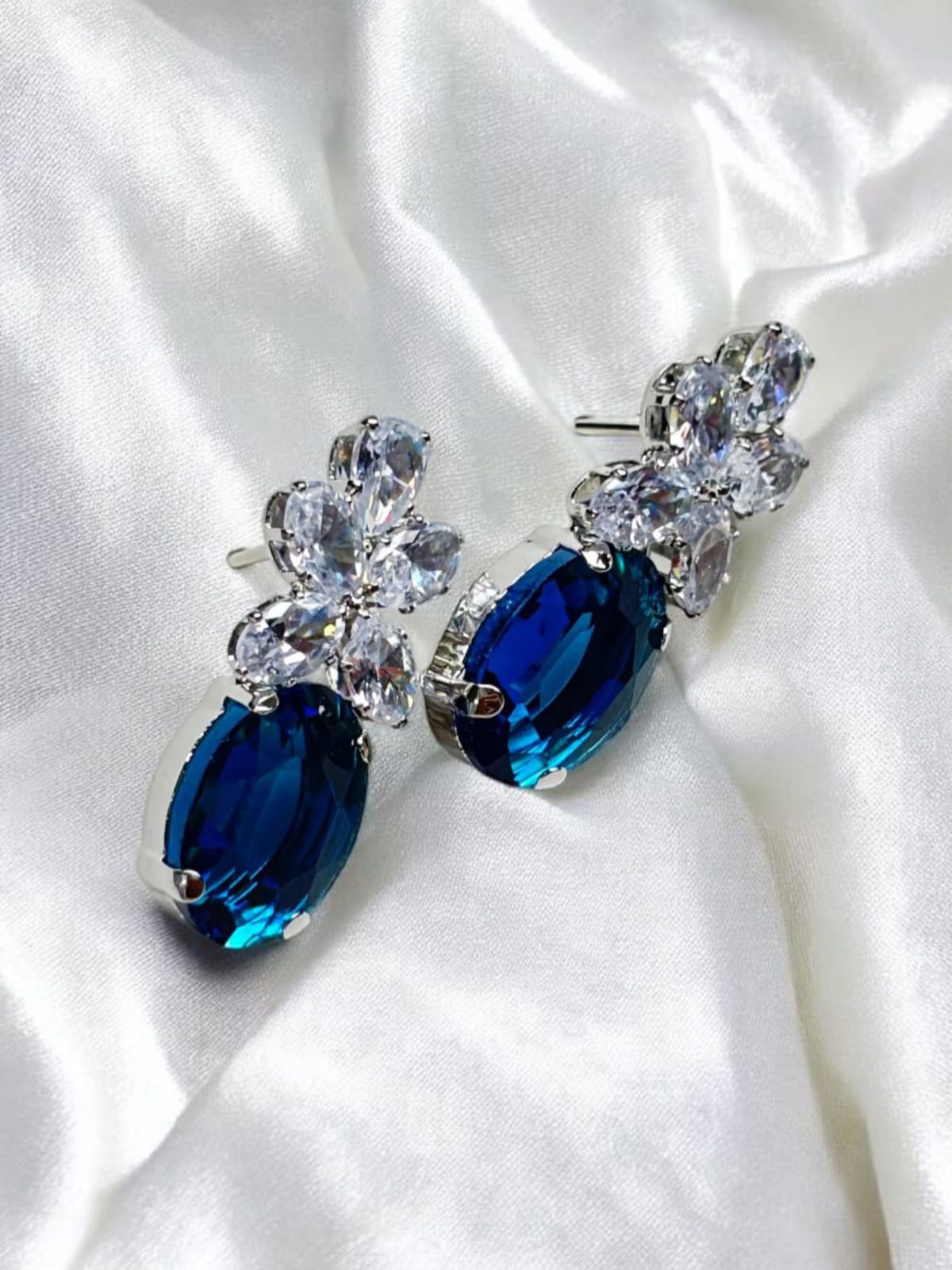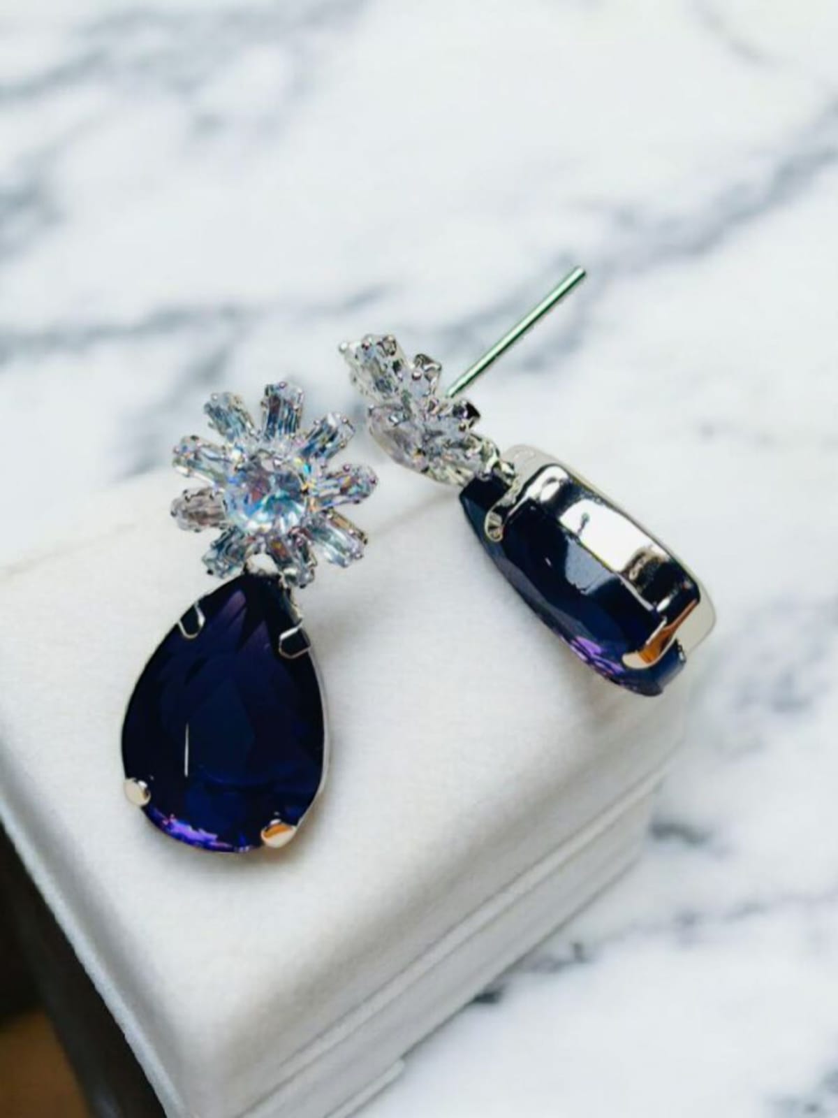 Elegant Blue Gemstone & Crystal Drop Earrings