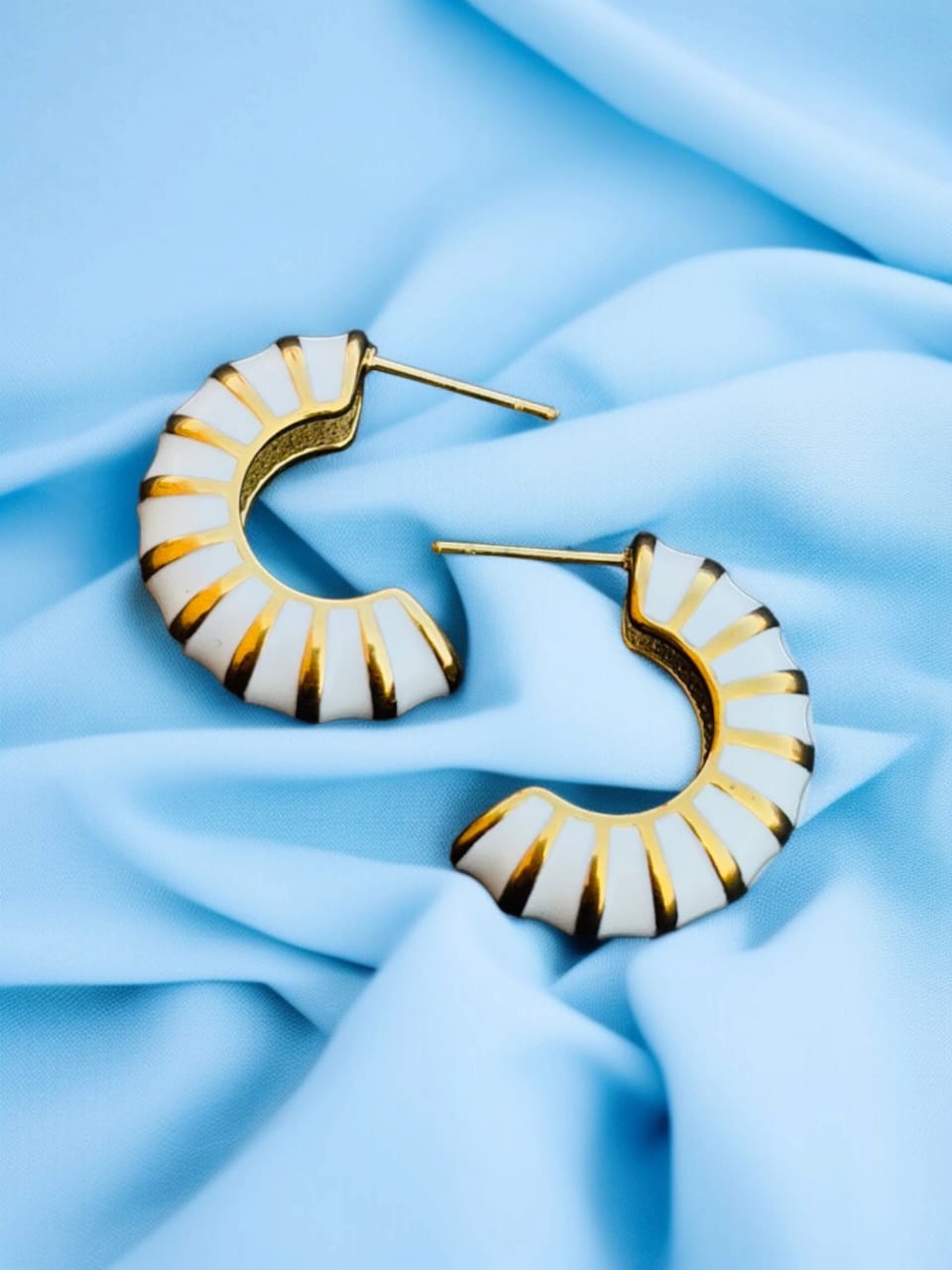 Retro Striped Gold & White Hoop Earrings